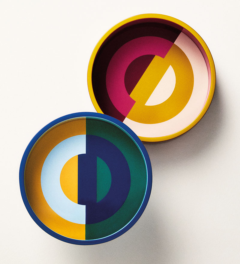 Mag het iets méér zijn? Deze kleurrijke aperitiefschaaltjes in gelakt hout met subtiel verwerkt CD-logo uit de “Entrelacés”-collectie zijn een creatie van Cordelia de Castellane voor Dior.